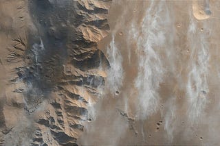 Wispy Martian clouds over the steep slopes of Ophir Chasma