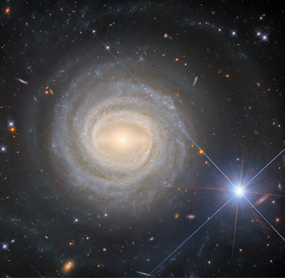 The intensity of the galactic centre is so high that it exhibits diffraction spikes in this Hubble image, a phenomenon typically seen only around stars like HD 101274. This further highlights the active nature of NGC 3783's core.