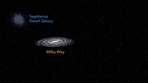 You may be familiar with the satellite galaxies of the Milky Way, such as the Large and Small Magellanic Clouds, visible in the bottom right of the image above. These are dwarf galaxies, but did you know there are other satellite dwarf galaxies like the Sagittarius Dwarf Spheroidal Galaxy?