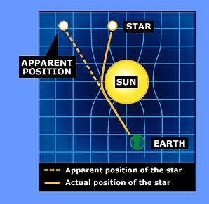 In 1919, the Eddington Experiment showed that space and time are warped by the sun. In the experiment, Eddington used a total solar eclipse to measure the gravitational deflection of starlight passing near the Sun. The value of this deflection had been predicted by Albert Einstein in a 1911 paper and was one of the tests proposed for both his 1911 theory of special relativity and his 1915 theory of general relativity.
