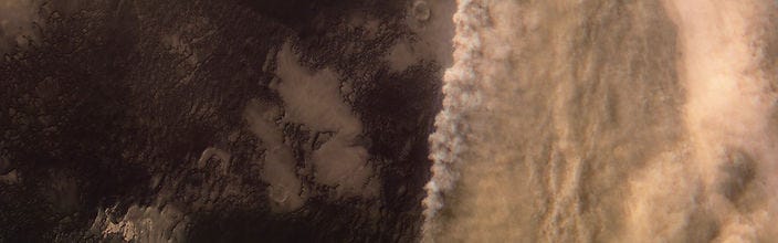 Occasionally, these fronts extend far enough south to incite large regional or global dust storms. A similar front, emerging about a month later, reached the Martian mid-latitudes before evolving into the global dust storm that engulfed much of the Martian surface in 2018.