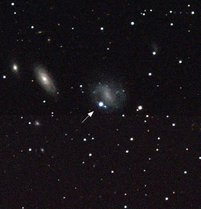 The pictured hypernova has been linked to gama ray burst GRB 980425, which was detected on 25 April 1998, the first time a gamma-ray burst has been linked to a hypernova. The hypernova is approx 140 million light years away, very close for a gamma ray burst source.