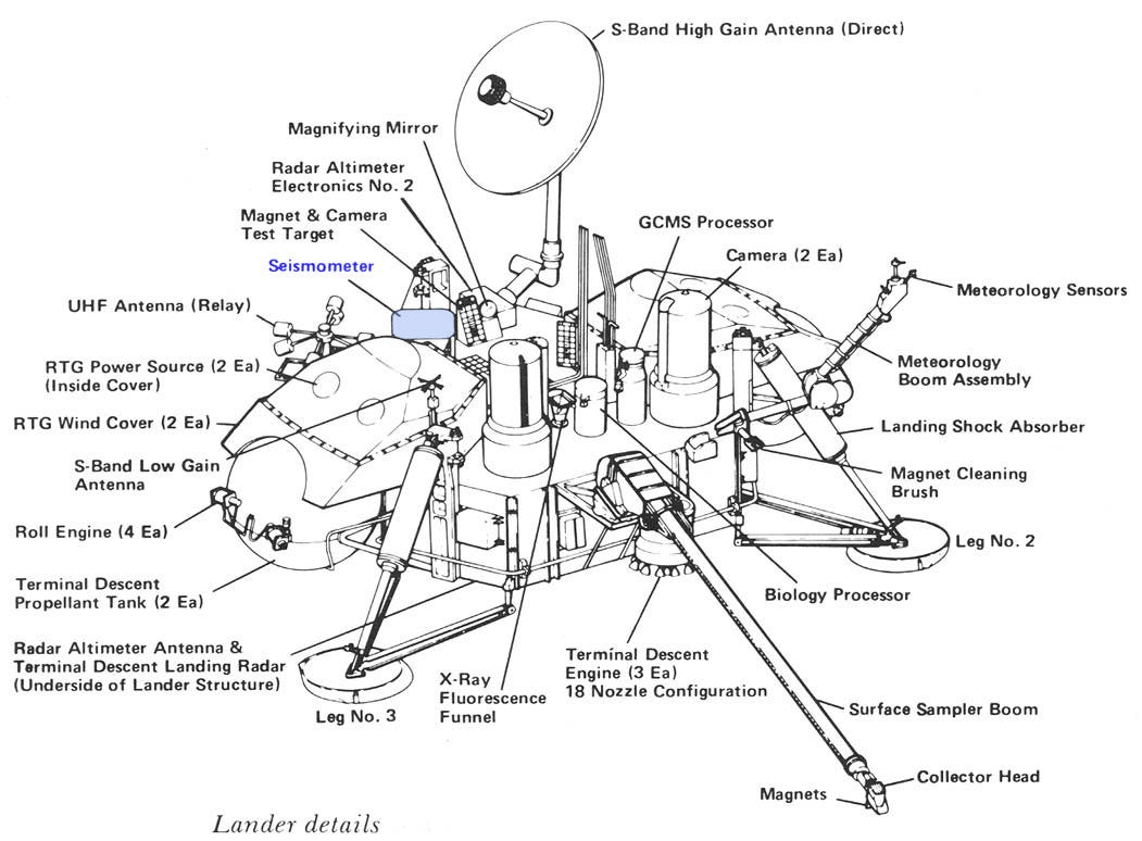 Seismometer — (highlighted) attempted to detect Marsquakes.