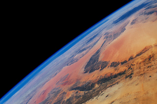 The vast Libyan Desert stretches toward the Mediterranean Sea, which fades into the horizon in this photograph taken by an External High-Definition…